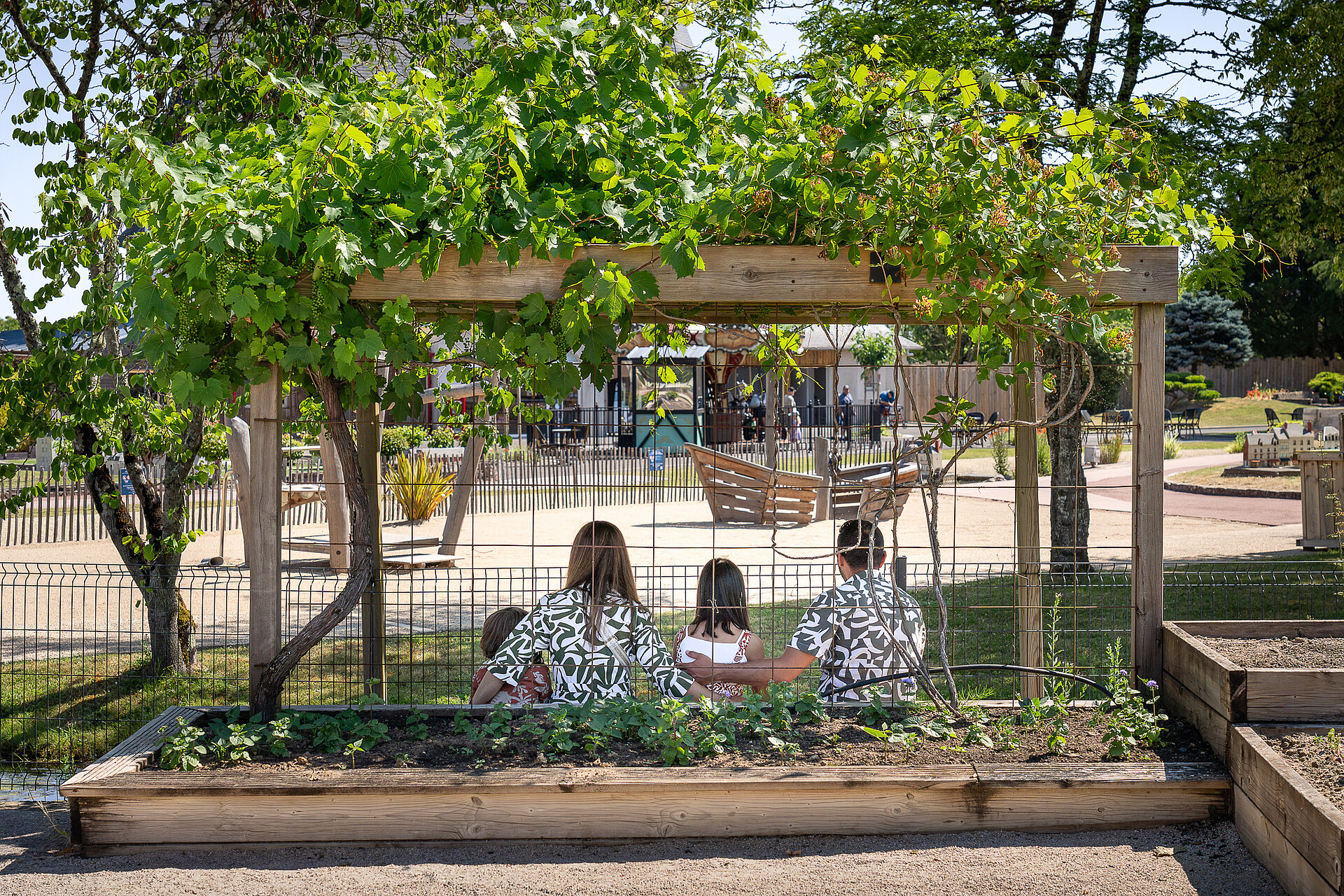 Nos espaces détente ombragés vous permettent d’apprécier la quiétude du parc, une pause détente bien méritée durant votre visite du Val de Loire.